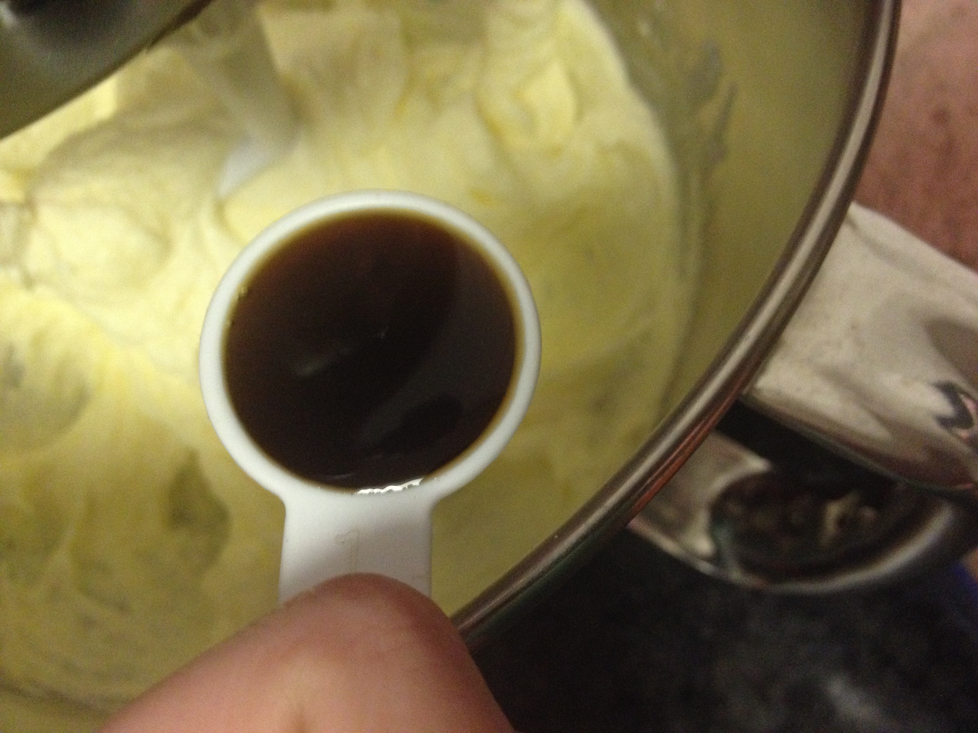 Mix that all in and then add in the vanilla. Use a spatula to scrap down the sides if the liquid starts to creep up the sides at all.