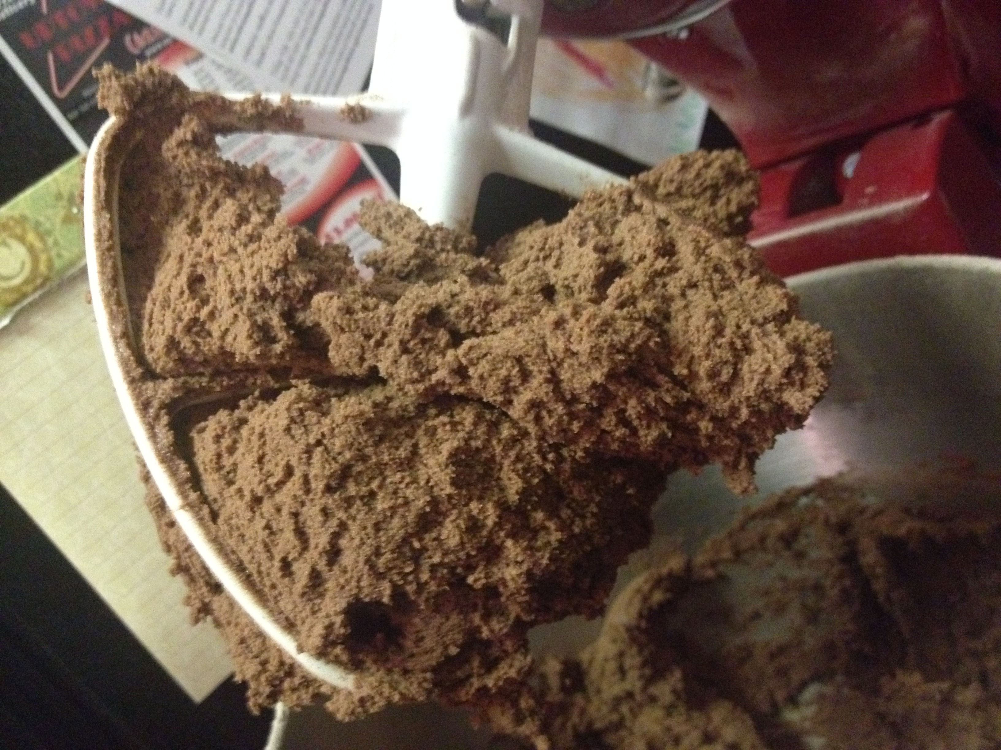 Last, gradually add in the dry ingredients, a bit at a time. I was a bit aggressive and ended up breathing in puffs of chocolate flour dust quite a bit. I do not recommend that situation so be gentle when adding your dry ingredients. Trust me. And also…the dough will get very thick, forewarning.