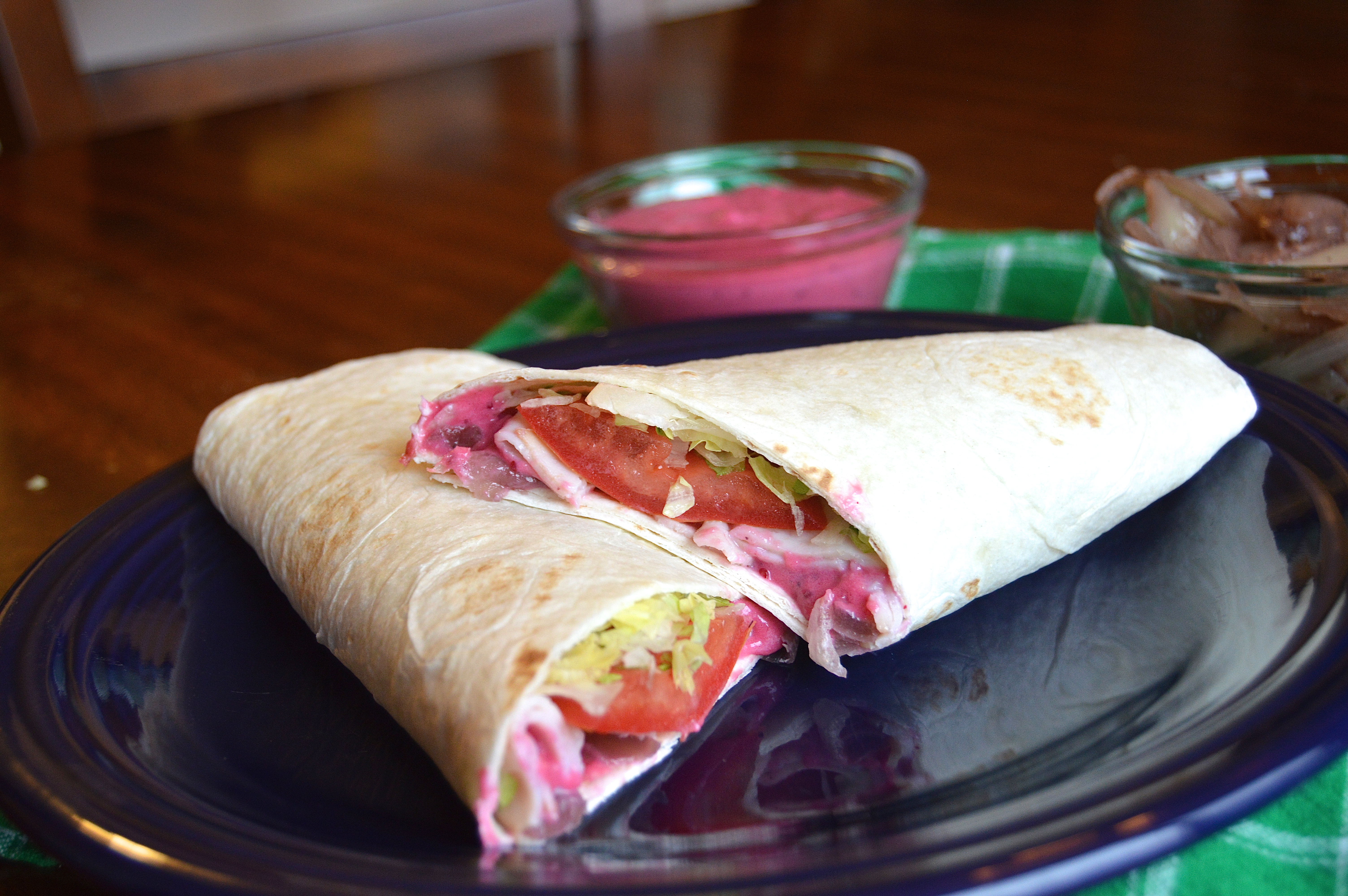 Turkey Wrap with Thyme Onions and Cranberry Yogurt
