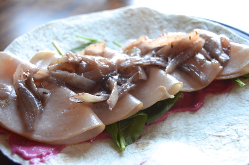 Turkey Wrap with Thyme Onions and Cranberry Yogurt